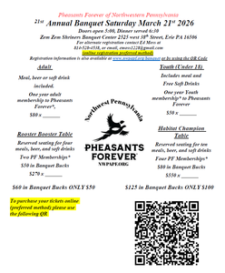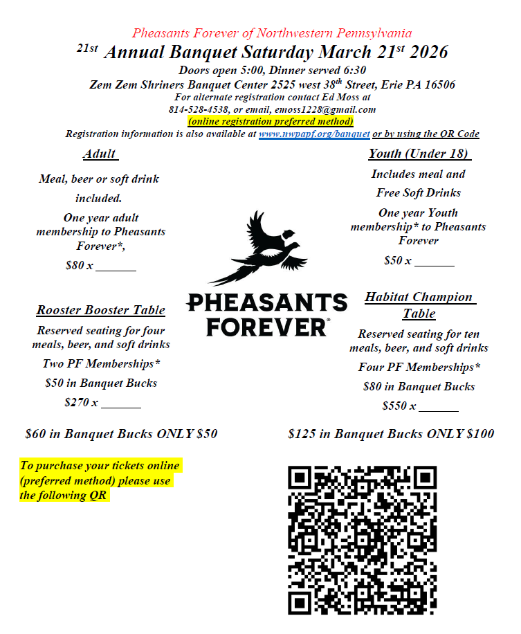 2025 Photos & Text Copyright - © Pheasants Forever Northwest Pennsylvania - 728 3plains.com - Pheasants Forever Websites